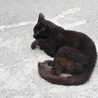 船着き場の黒猫