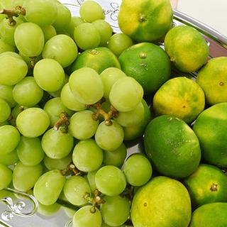 デザートはシャインマスカットと早生ミカン 事務局長の旦那様が南アルプス市まで行って仕入れてきたシャインマスカット