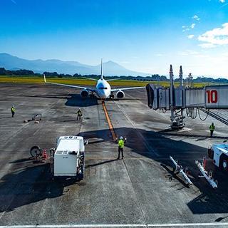 搭乗機の到着 背景の山が霧島連山などです。