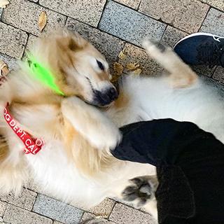 お濠沿いを歩いていると、時々出会うゴールデン。リンちゃん以上に人が好き。