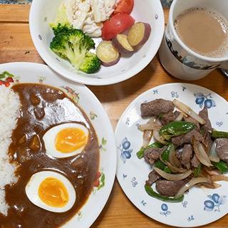 冷蔵庫の残り素材を使いカレーライスとしました。カレーはレトルトでした。