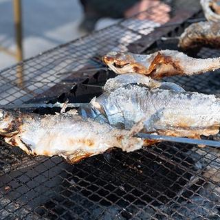 ヒメマスの塩焼き 焼いている人に「国鱒?」と聞くと「天然記念物だからできない」とのこと。なるほど。