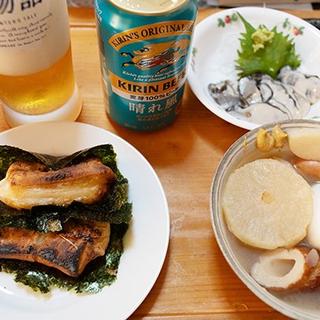 寿司はできないと言われて、生牡蠣を購入(500円)しました。もう一つ450円でカンパチを購入したのですが。これは夕飯に回します。