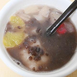 1月12日どんど焼きがあり参加してきました。 地元の和菓子屋のしるこが振舞われたので、フルーツを落としてみました。
