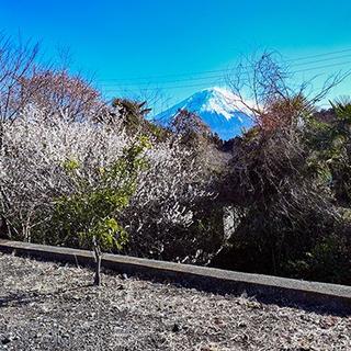 白糸の滝ファミリーマート店からの白梅と富士山 まだまだ撮影を続行できそうです。